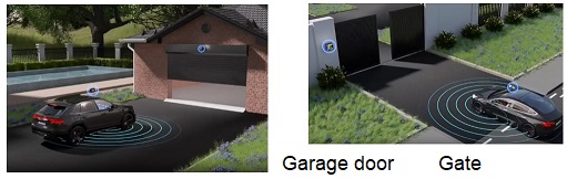 The dongle is paired with every gate or barrier that it is authorised to enter. The receiver (shown in the photo) is wired into the gate or barrier control panel. It can be set to close the gate or garage door when the ignition is switched off